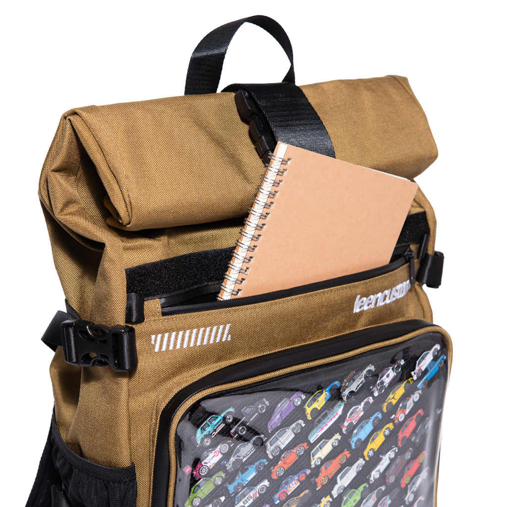 The official LC roll top backpack for everyday use! On the commute, on the track, ready to hold all of your essentials. Each bag comes with 2pc 9.5"x10" pin inserts to display our collection. Secured by YKK Water Resistant Zipper Tape.